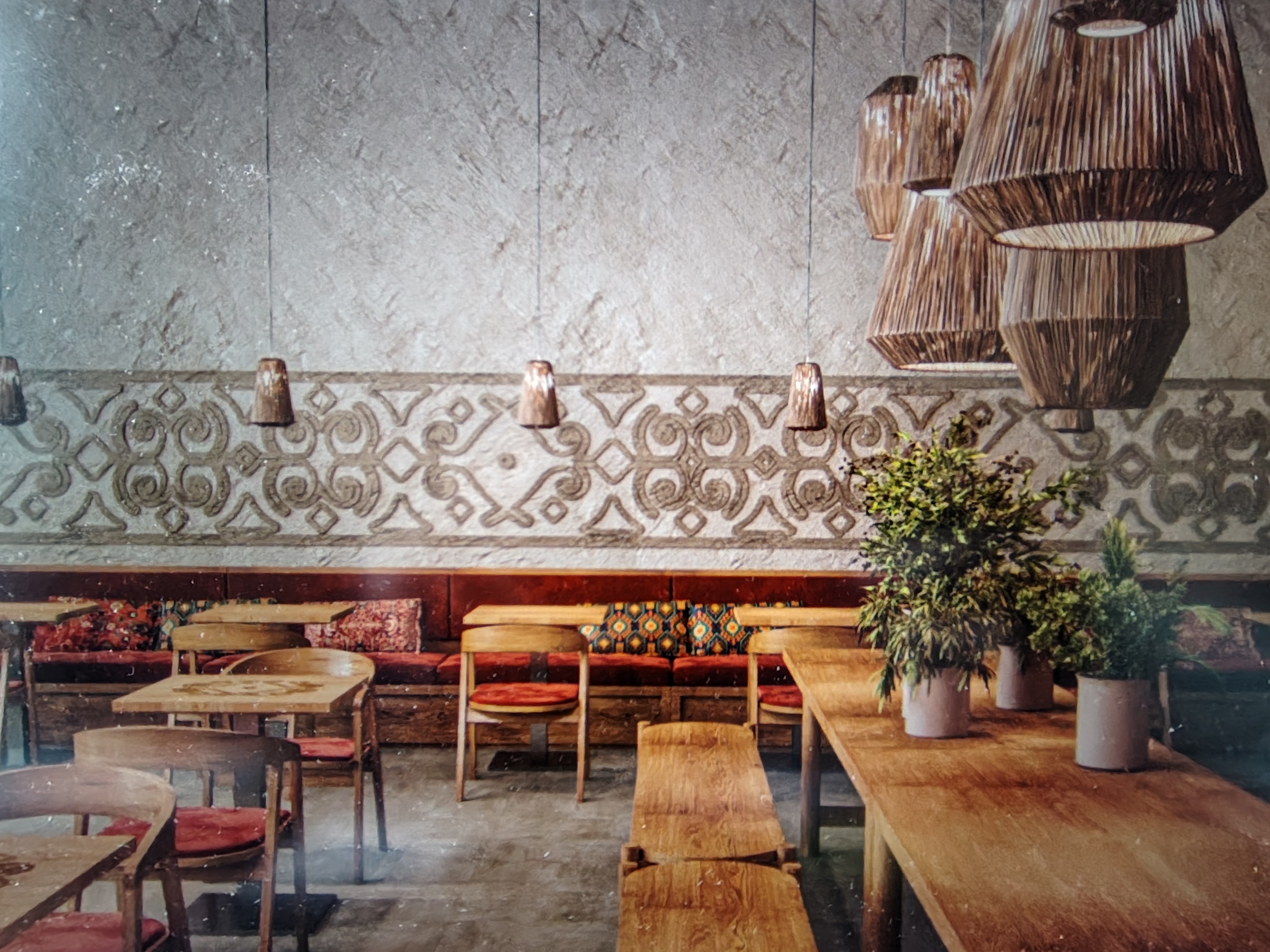 Нанести орнамент по штукатурке стены Ширина около 1м, длина 9,5м (заказ 85299)