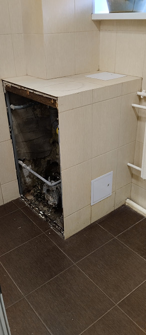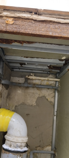 Объем небольшой. Демонтировать и переложить короб(фото). Каркас из профиля, гипсокартон, положить на конструкцию плитку. Зафуговать. Материалы ваши. Если возможно подъехать, составить смету. Договор, безнал. Госучреждение. (заказ 72300)