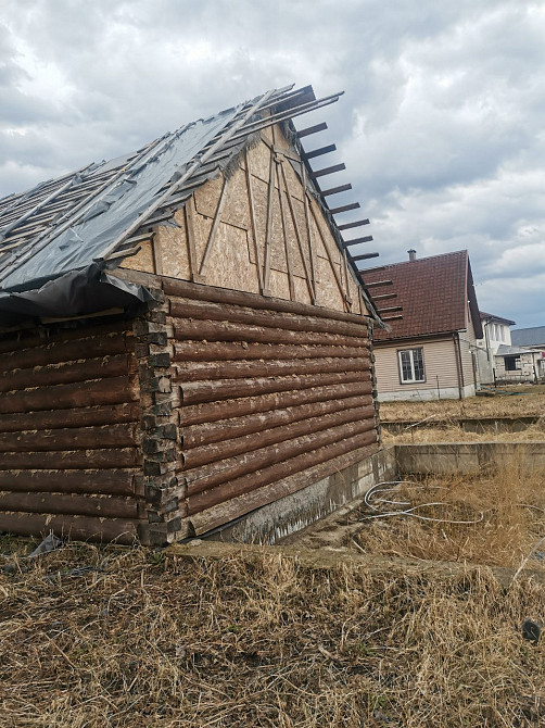 2. Подшивка свесов крыши, установка всех доборных элементов. Доработка стропильной системы (опоры, поперечины). Само кровельное покрытие уже сделано (металлочерепица).