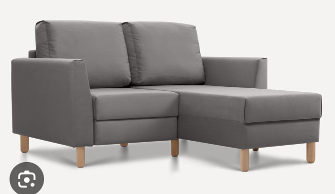Подлокотник с одной стороны, ткань среднего ценового сегмента. На ножках высотой не менее 10 см. Трансформируется в кровать. В статичной длинной части есть место для хранения. 2 подушки