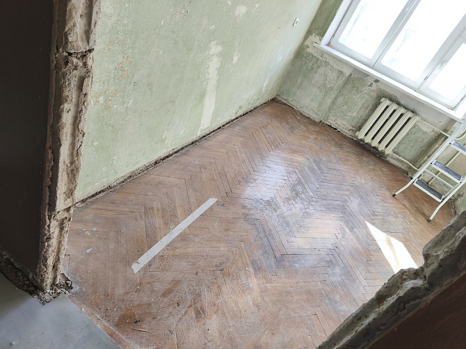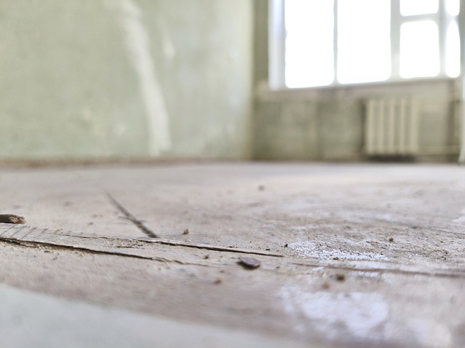 Дано: дом 1967 года постройки, квартира 40 квадратов. Плинтуса, двери, откосы сняты. Пол - паркет, очень старый. Идёт волнами. В некоторых комнатах перепады высот, сколько точно не скажу, но есть.