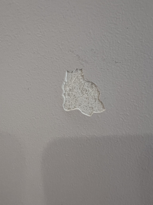 Нужно выполнить аккуратный локальный ремонт стены: после снятия самоклеящихся крючков местами сорвало слой покрытия (краска/шпаклёвка), образовались небольшие сколы/ямки. Требуется восстановить поверхность так, чтобы место ремонта было максимально незаметно (без “пятна” и видимого перехода по фактуре и цвету). (заказ 83739)