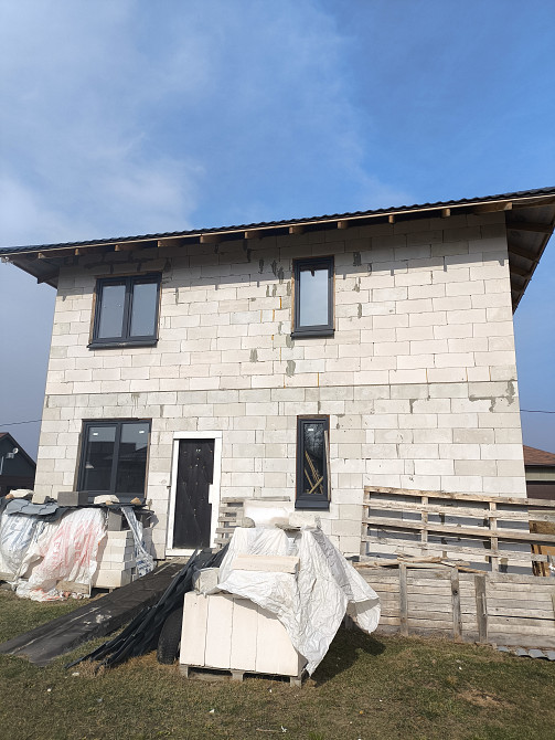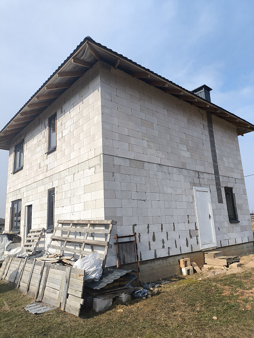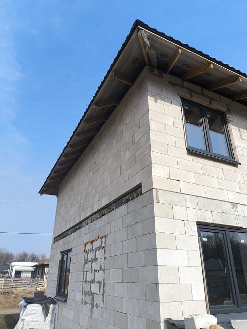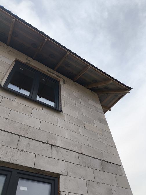 Дом размерами 9х9, кровля четырехскатная, расстояние от стены до края кровли около 70 см. Адрес: садовое товарищество "Водолей-2010" район озера Вяча (заказ 67303)