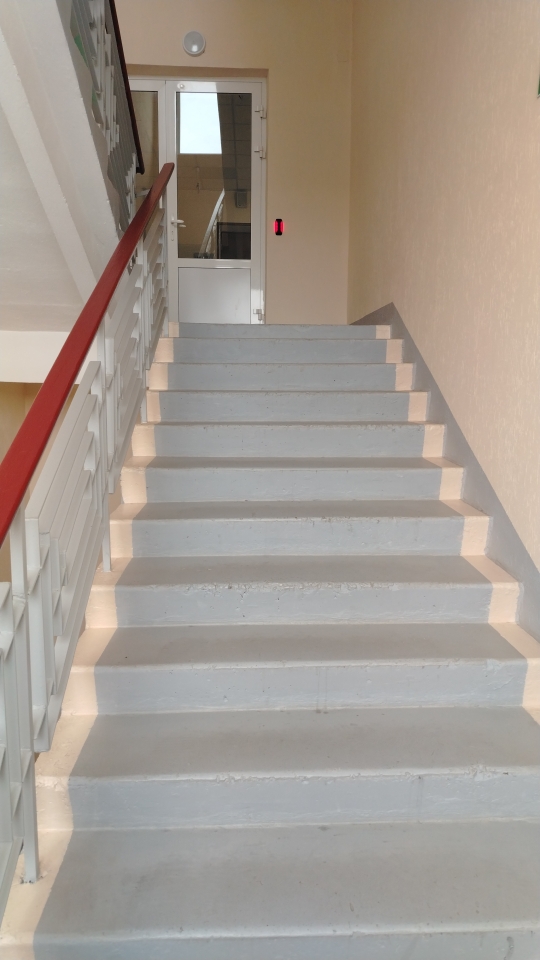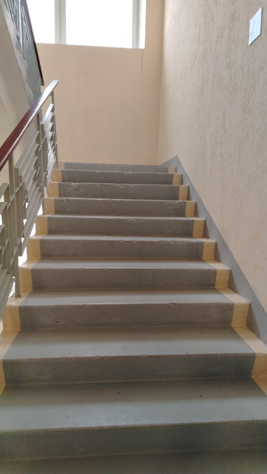 Необходимо облицевать ступени керамогранитом, установить перила и покрасить стены на лестничной клетке в 6 этажей в административном здании. (заказ 84928)