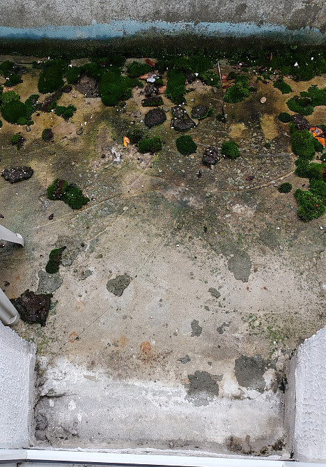 Обработка открытого балкона многоэтажного дома от мха и плесени. Покрытие бетона защитными средствами. Окраска. Укладка плитки на пол балкона. Установка кровли балкона. Остекленение балкона. Утепление балкона. Минск. Фото, видео вышлем. (заказ 81313)