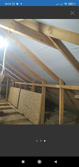 Необходимо подшить чердак кровли плитами OSB (крыша вальмовая) около 200 квадратов (нужно перемерять) по стропилам в доме. Деревня Пятевщина, 15 км от МКАДа по р23. (заказ 81182)