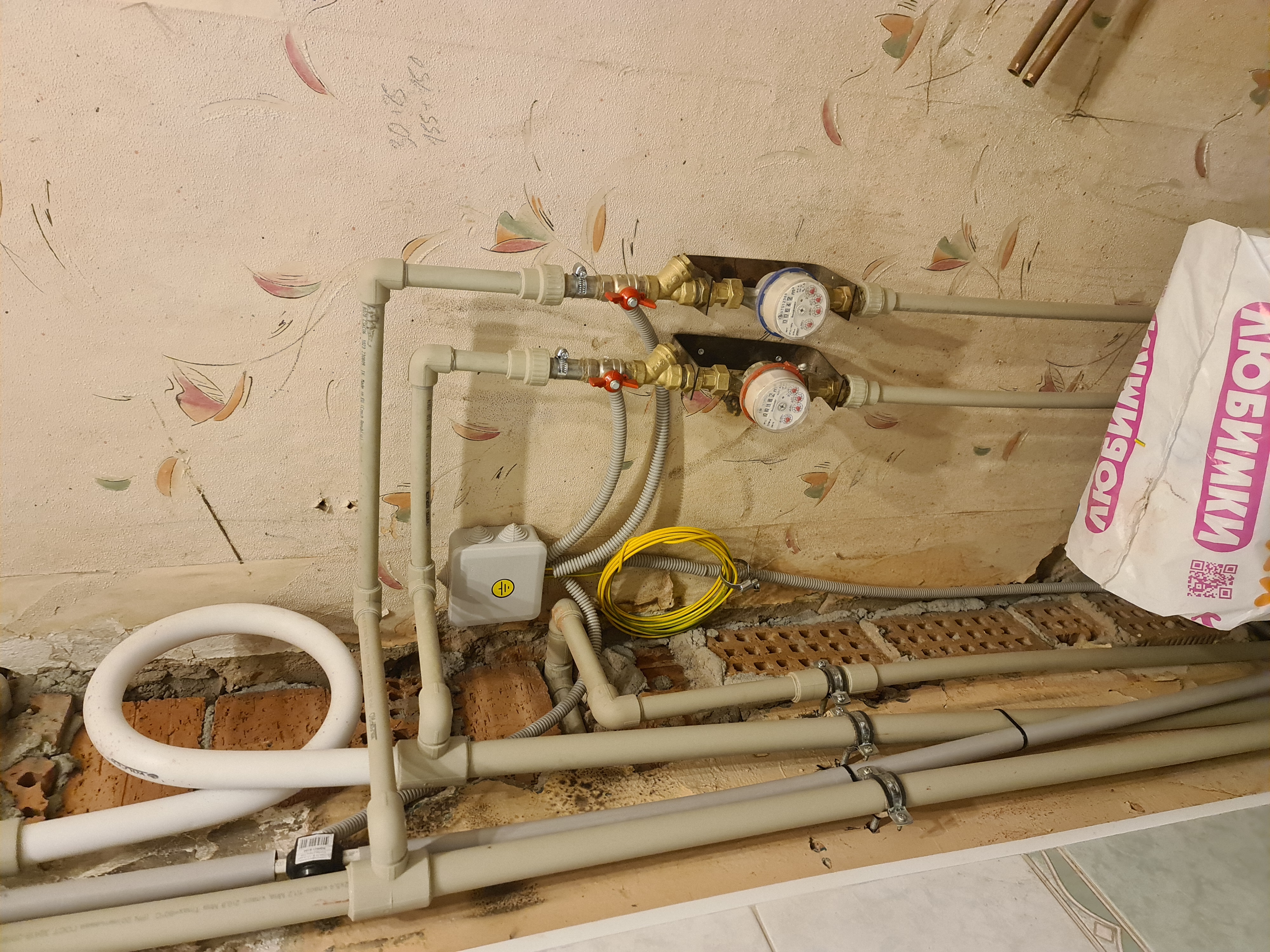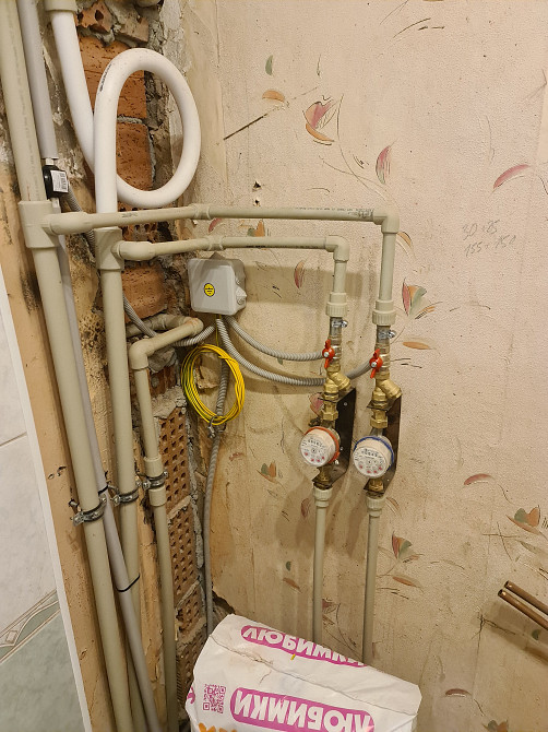 Во время капремонта отрезаны старые медные трубы на умывальник в санузле. Надо сделать подключение меди - х/в, г/в к новым пластиковым трубам. (заказ 86999)