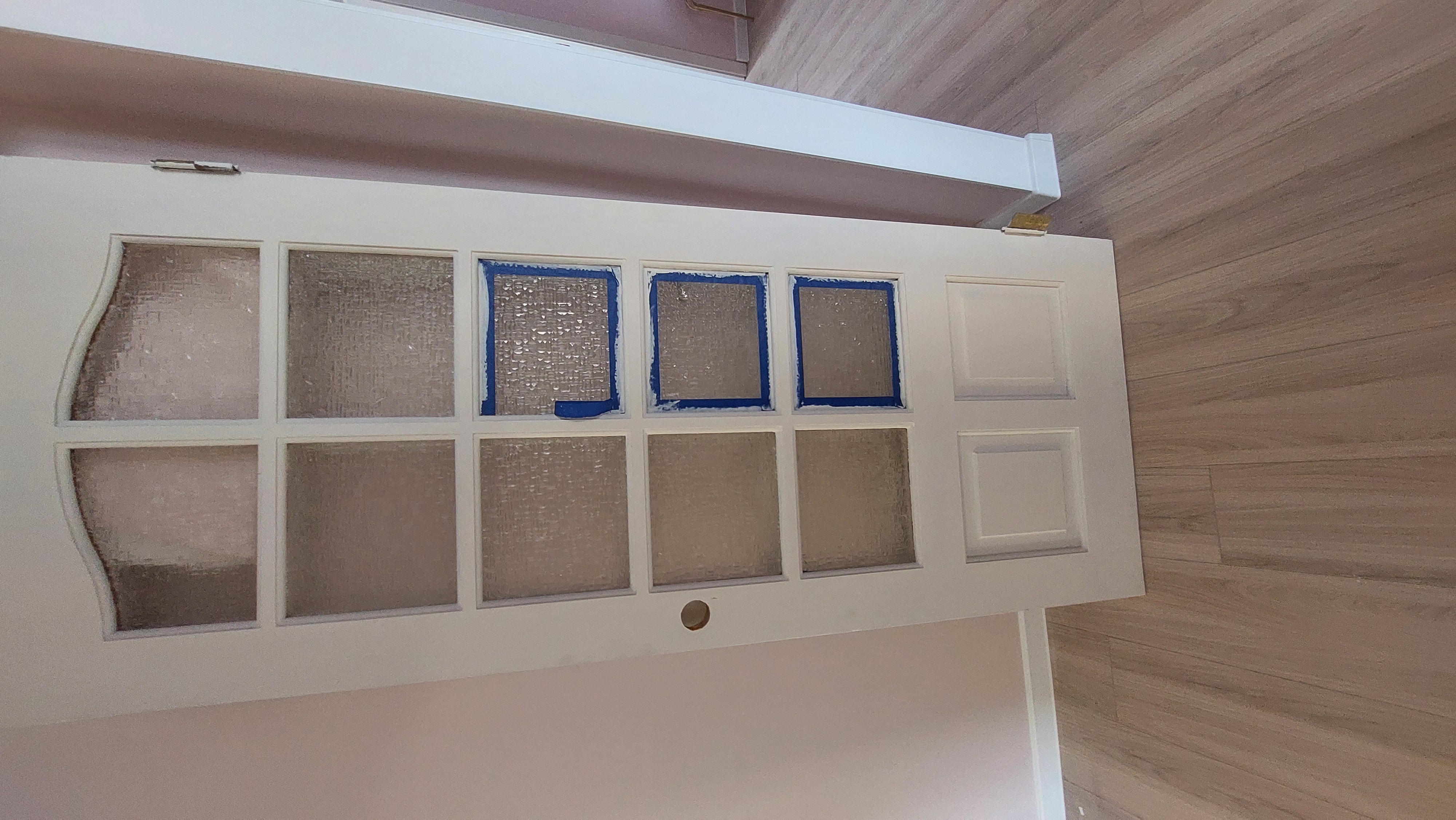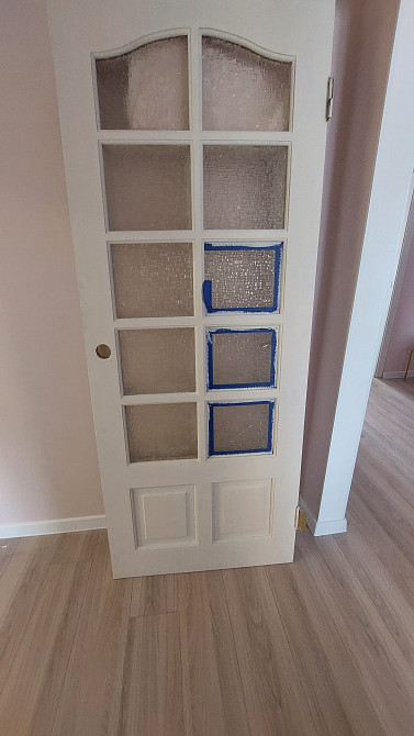 В процессе ремонта сняли 2 двери, покрасили их, нужно установить обратно. Коробка с наличниками готова к установке. Нужно врезать новые петли и установить новые ручки, аналогичные старым. (заказ 84216)