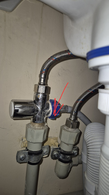 1. При запуске стиральной машины(и при использовании крана над раковиной) начало капать в месте, куда подсоединен шланг.