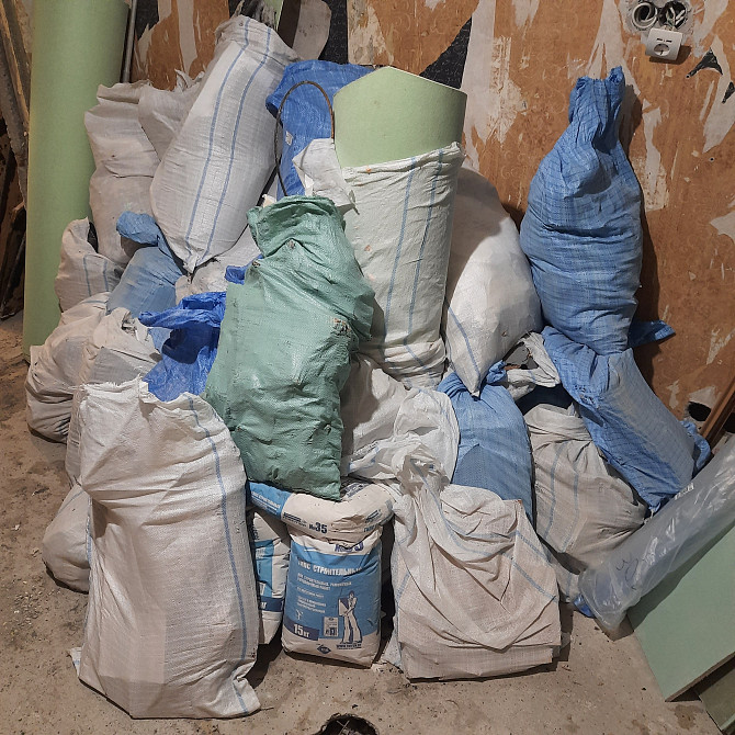 - 40 мешков (18 мешков с боем ж/б и плитки, а остальные с обезками гипсокартона, обоев, проводов и прочим мусором) - фото #1;