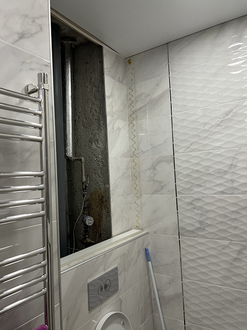В санузле выпала коробка вместе с дверцами доступа к стояку. Коробка была посажена на жидкие гвозди. Надо поставить все это на место. (заказ 83647)