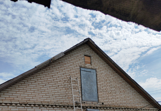 Снять старые доски, подшить новые и закрыть оцинкованный ветровой планкой. Только с одной стороны дома. (заказ 76131)