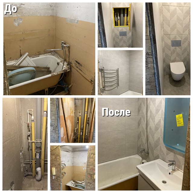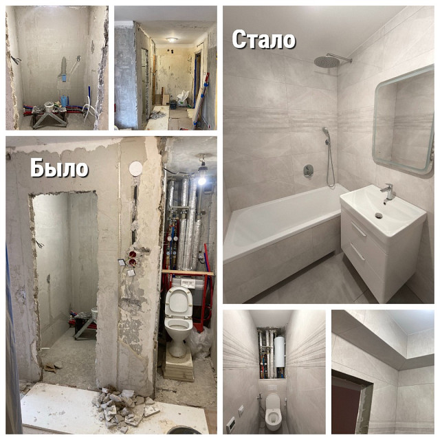 Опыт работы — 5 лет. Делаю на совесть: ровные стены, надежная разводка, четкая укладка плитки. Беру на себя весь цикл: от демонтажа и до финишной отделки.