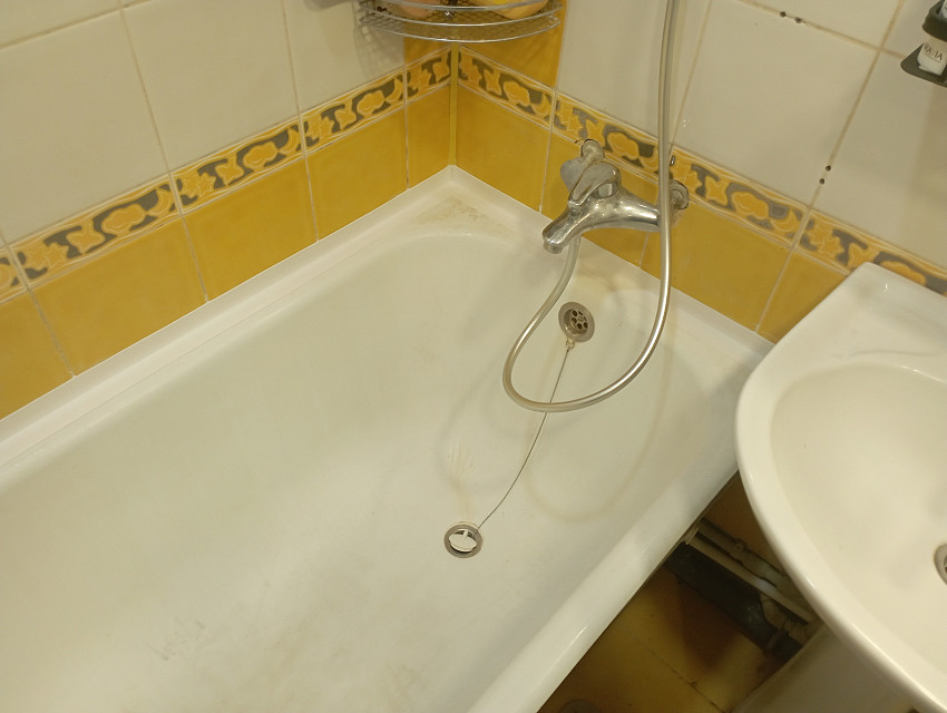 Замена герметика в ванной , монтаж бордюрный ленты