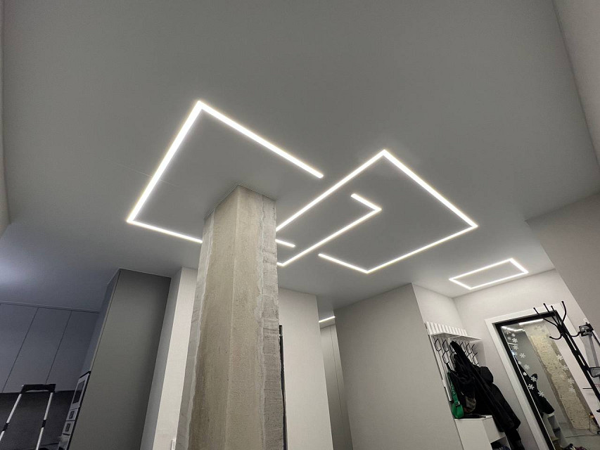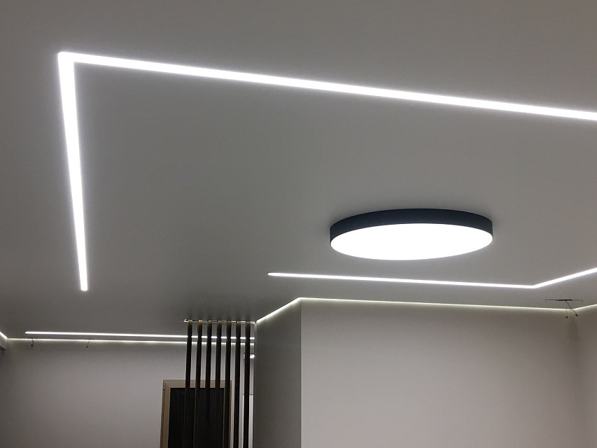 Потолки в частном доме с световыми линиями